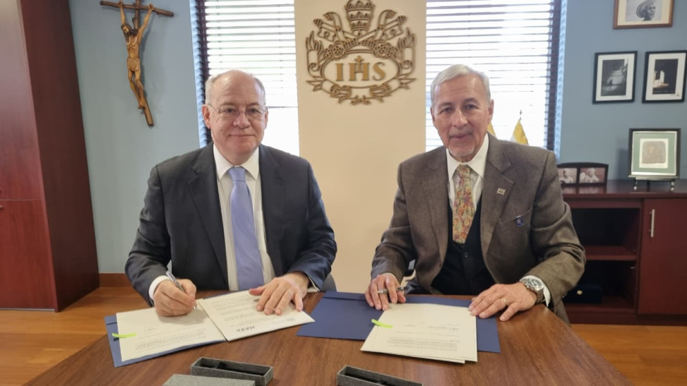 Esta semana, el rector de la Universidad Juan Agustín Maza encabezó una visita a la Pontificia Universidad Javeriana. Durante la misma, se llevaron a cabo la firma de un convenio con la Rectoría, reuniones con el Decano y Vice Decano de Abogacía, encuentros con Posgrados y Educación Continua de Contador Público, reuniones con Asesoría Pedagógica y Universidad Saludable, recorrido por el área de Ciencia y reunión con el área de Donaciones, fortaleciendo los vínculos académicos y la cooperación institucional.